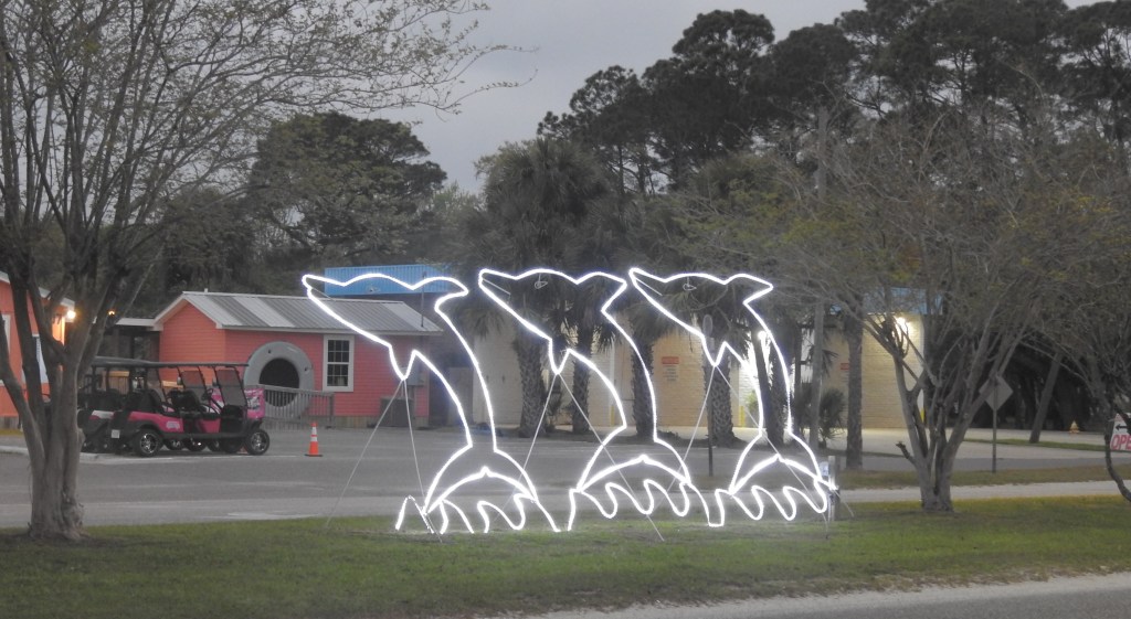 Susan and I walked to the bakery the past few days. It’s a nice walk and we could go directly to Shell Mound afterwords where there are usually a lot of birds. These are the Dauphin Island Dolphins.