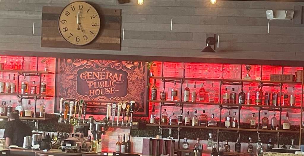 In New Smyrna Beach we went to dinner at General Public House where I had a great meal. We all shared fried green tomatoes. Then I had gumbo, which was excellent. Dinner was red fish with garlic mashed potatoes and asparagus which was also quite nice.
