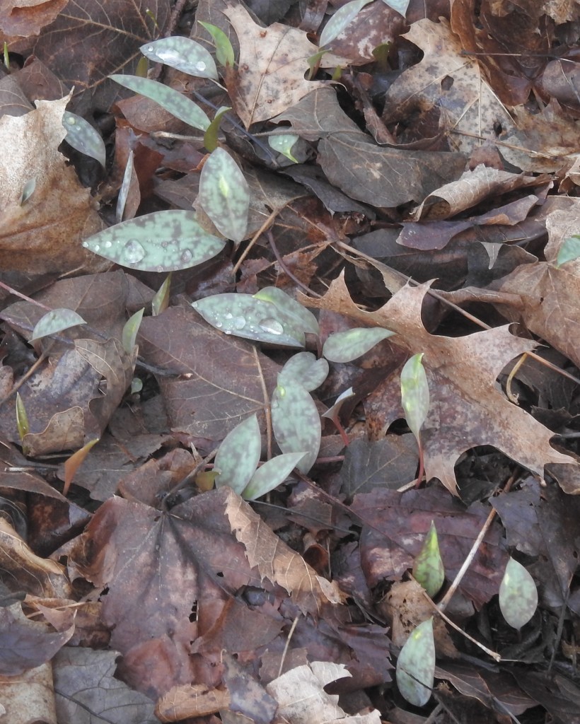 Yellow trout lily leaves were abundant. In a few weeks their flowers will carpet the parks along the Huron River.