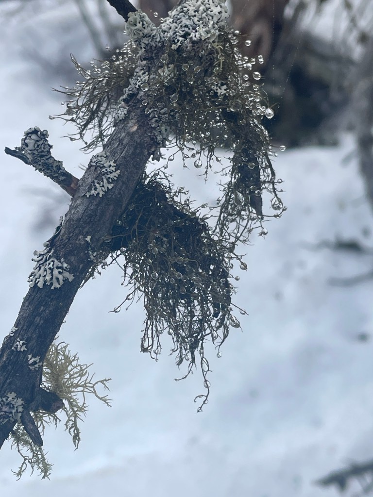 Lichens growing on trees. Fringed wrinkle-lichen in the center on the left, Burred horsehair lichen on the right. I like the horsehair lichens, they’r like the dark brown versions of the old man’s beard lichens. More on thise in the future.