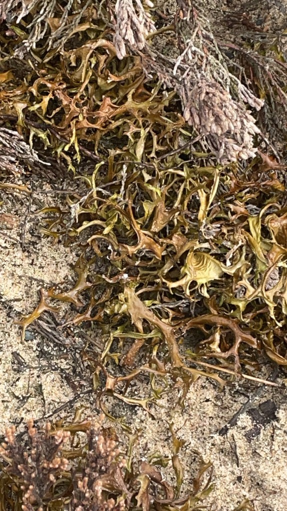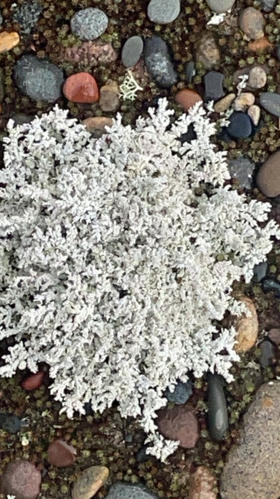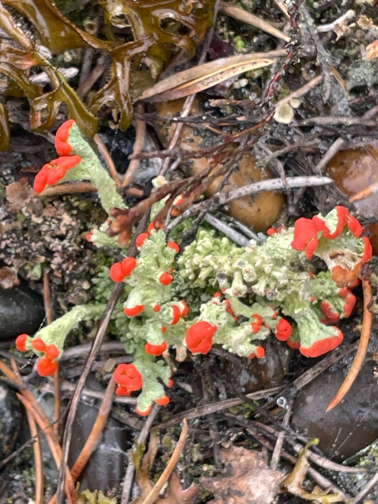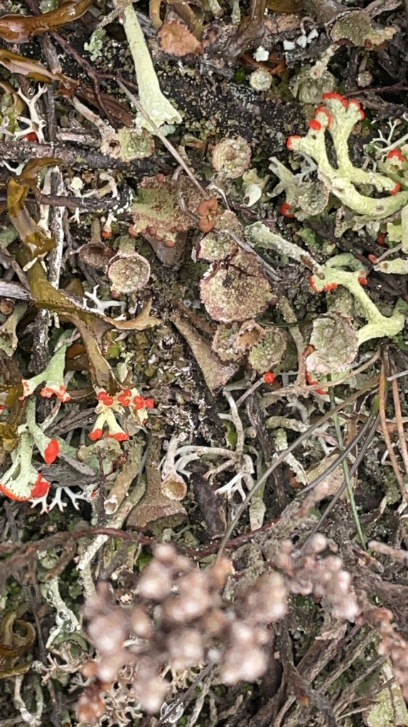 Yesterday on our walk to the point it was obvious that lichens were everywhere. For years I’ve been interested in this little symbiotic organisms. They’re a combination of fungal cells and algal cells.