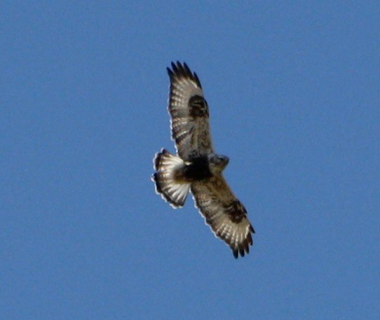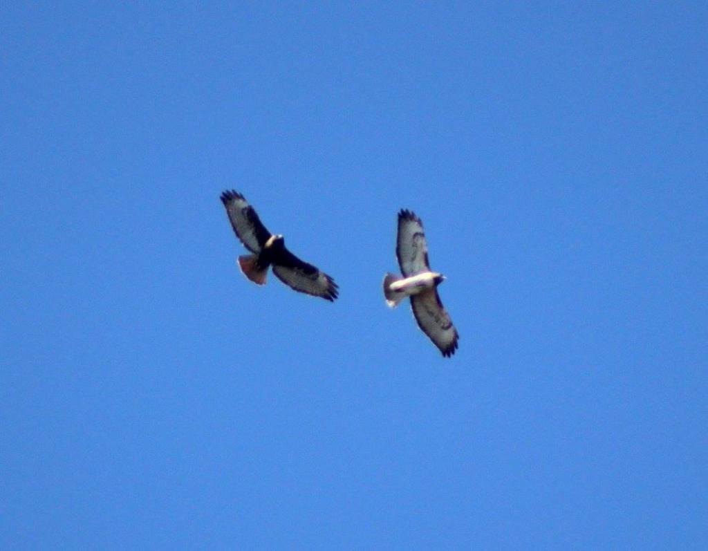 Rough-legged Hawks come in two color-morphs. The bird on the left is a light-morph bird. The one on the right is a dark-morph bird.