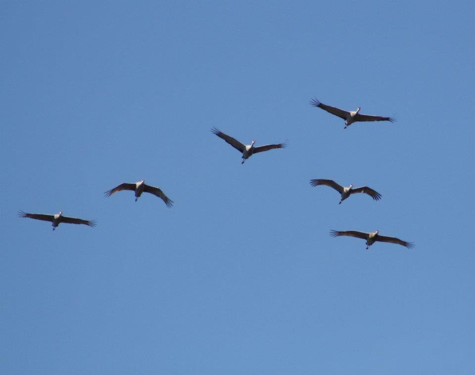Sandhill Cranes nest locally, but also migrate by the tens of thousands here.