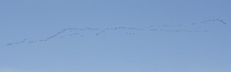 There birds pass in large strings, often numbering in the hundreds. You can tell that they are coming by their raucous, primitive-sounding calls.
